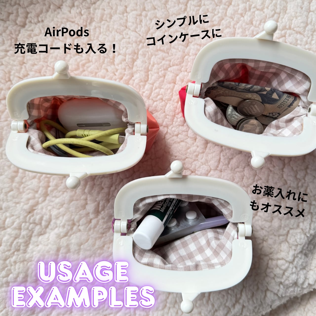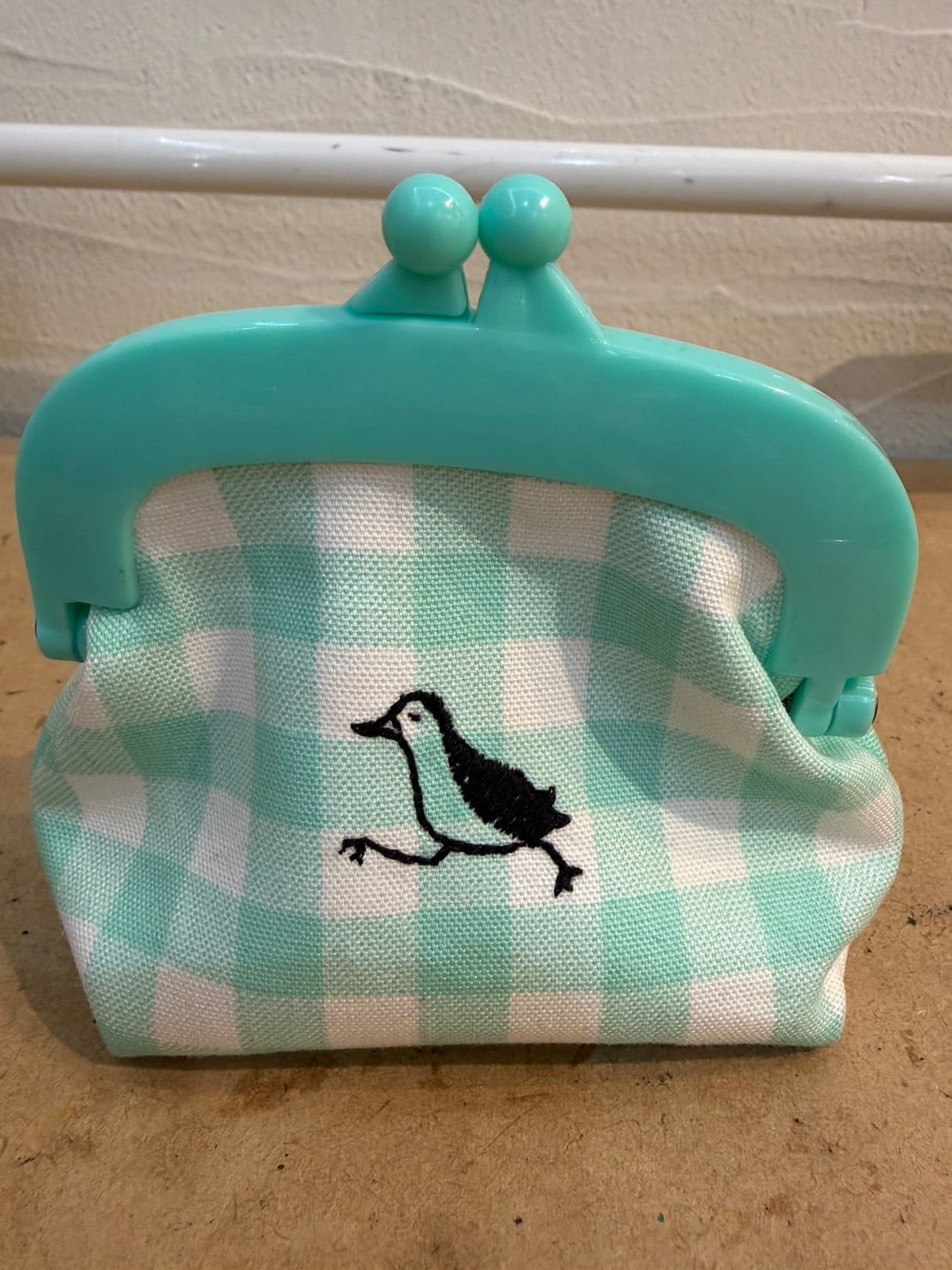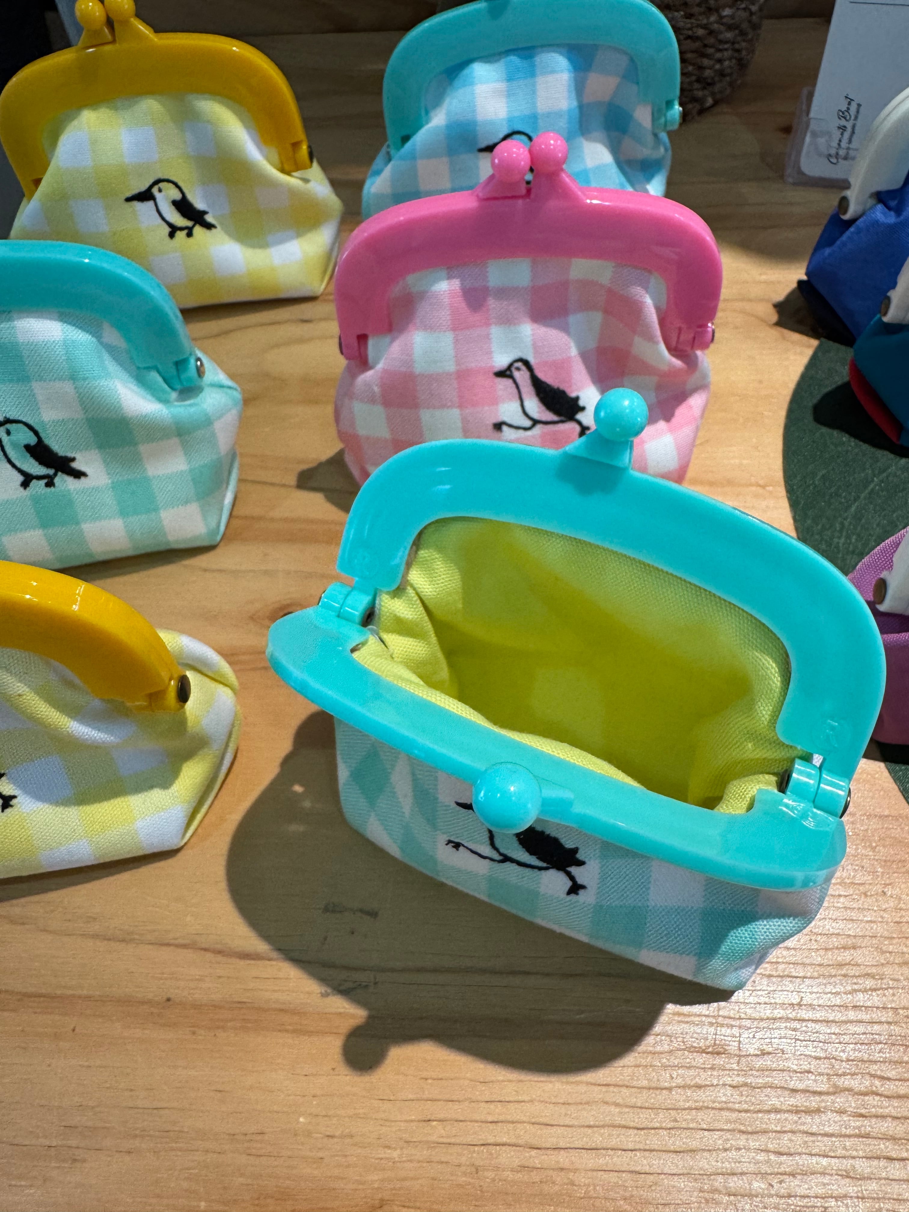 【春夏限定】シロハラクイナ刺繍がま口 パステルチェック